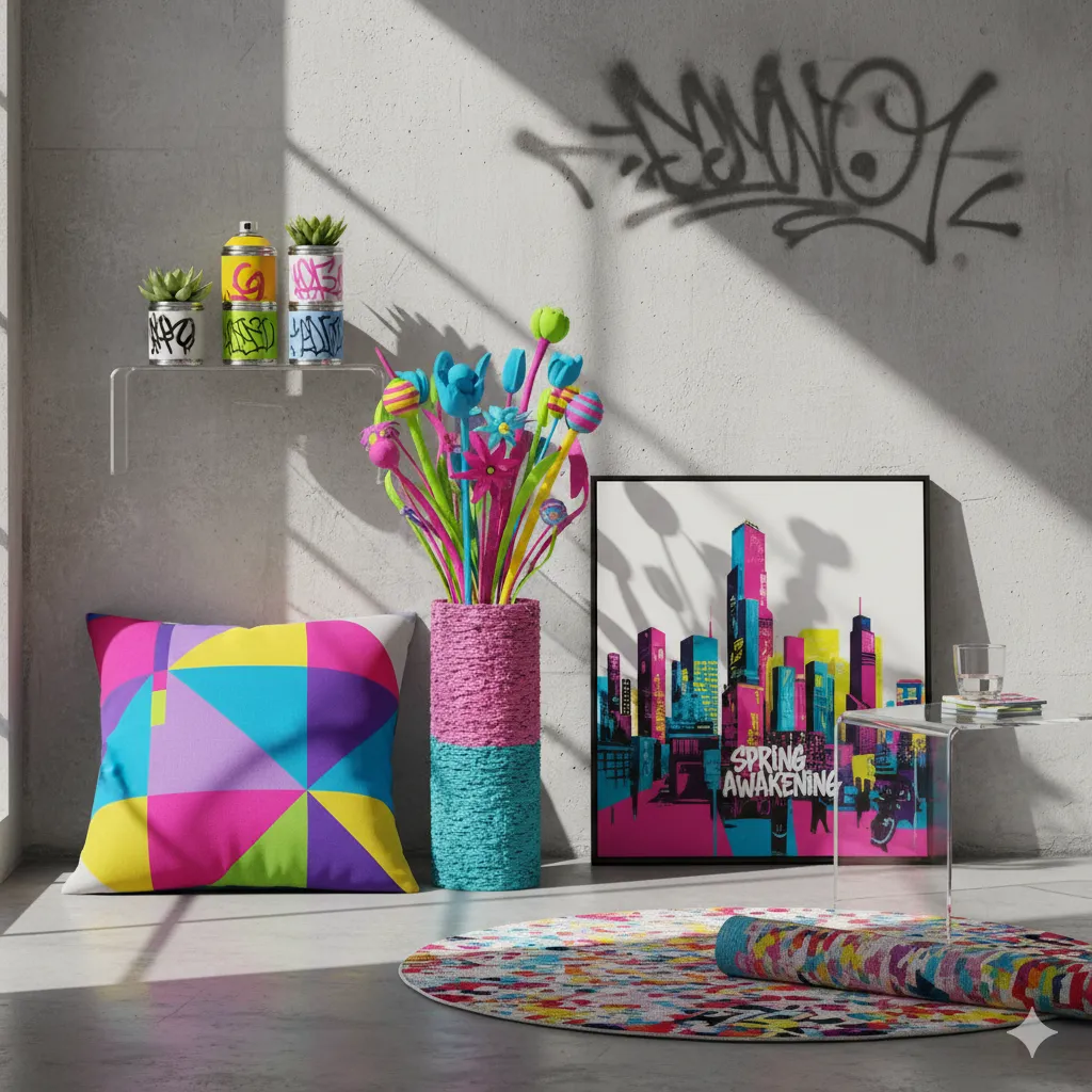 Fresh street-inspired accents for spring. Vibrant colors and modern designs that bring energy to your space. Perfect for refreshing your home after winter.